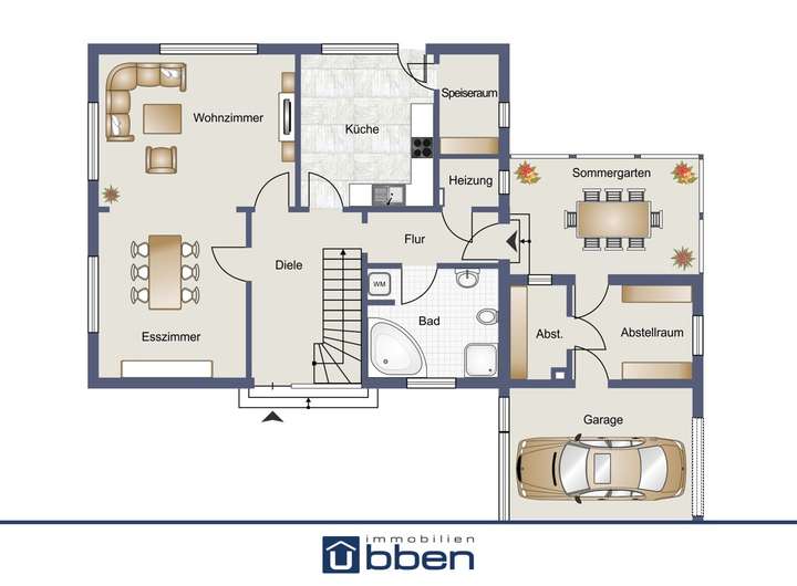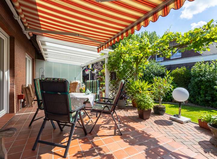 Die sonnige Süd-West-Terrasse lädt zu erholsamen Stunden im Freien ein und bietet einen wunderbaren Blick in den gepflegten Garten – ein idealer Rückzugsort für entspannte Nachmittage oder gesellige Abende. Abgerundet wird das Angebot durch die integrierte Garage mit direktem Zugang zum Haus.