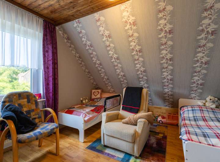 Die Raumaufteilung ist durchdacht und familienfreundlich gestaltet. Insgesamt stehen vier gut geschnittene Schlafzimmer zur Verfügung, wodurch ausreichend Platz für die ganze Familie, ein Homeoffice oder ein Gästezimmer gegeben ist. Mit nur wenigen Umbaumaßnahmen wäre auch ein komfortables Wohnen auf einer Ebene möglich – ideal für alle, die perspektivisch barrierearm wohnen möchten.