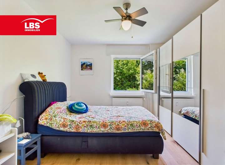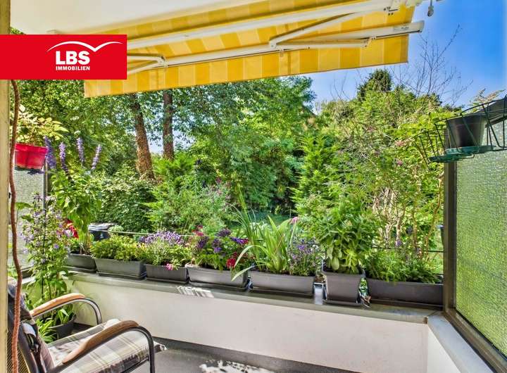 Balkon mit schönem Ausblick in den ruhigen, gepflegten Gemeinschaftsgarten