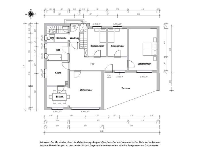Im Erdgeschoss erwarten Sie der großzügige Wohn-/Essbereich, drei weitere helle Zimmer, eine Küche, ein Badezimmer sowie ein separates Gäste-WC. Es sind keine Einbauten in der Küche.