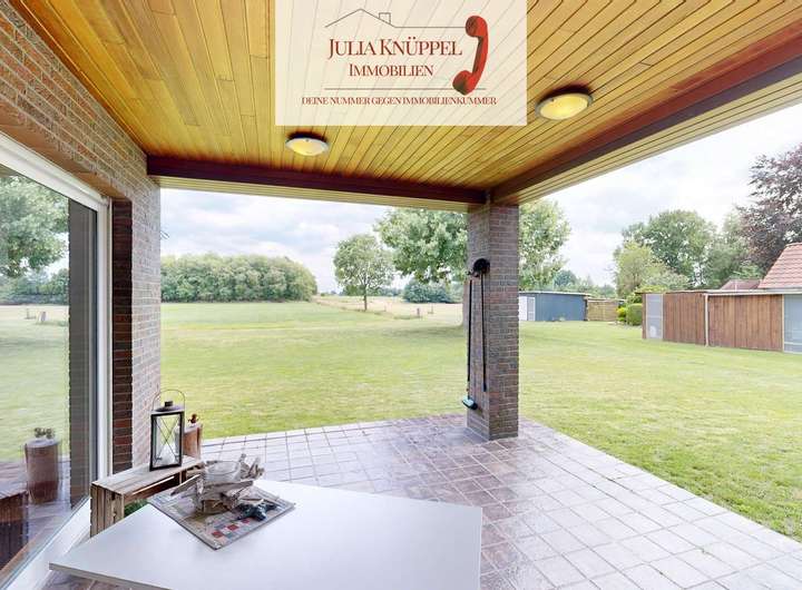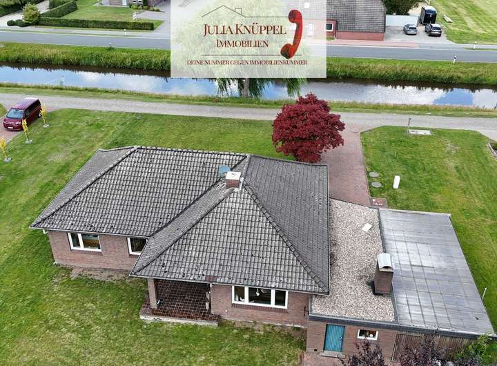 Dieses Zuhause ist genau richtig für die, die sich Tierhaltung wünschen, aber keinen klassischen Hof suchen. Der Bungalow in Wiesmoor liegt ruhig, zurückversetzt hinter dem Kanal mit freiem Blick auf eine große Weide, die direkt ans Grundstück anschließt.