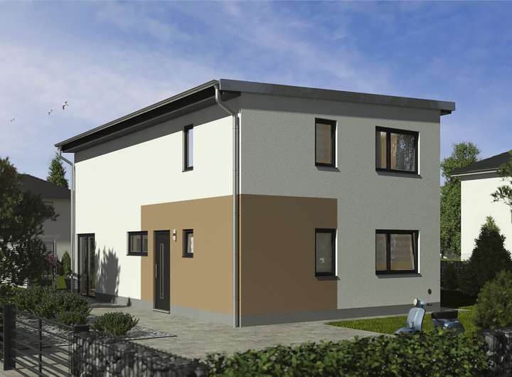 Dank seiner kompakten Außenmaße eignet sich dieses Haus auch für kleine Grundstücke und damit ist das „Aura 136“ optimal für alle, die sich ihren Traum vom Eigenheim in stadtnähe erfüllen wollen. Das flachgeneigte Pultdach vermittelt schlichte Eleganz und ermöglicht ein Wohnen in zwei Vollgeschossen ohne Dachschrägen.