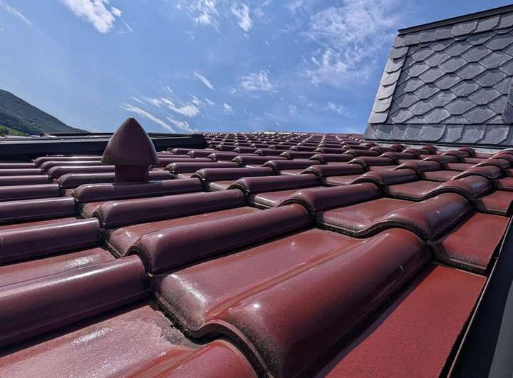 Komplett neues Dach (2003) mit lasierten Ziegeln und Geschossdeckendämmung.