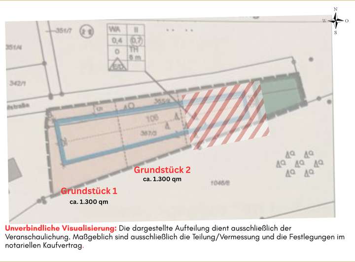 Die Vermessung/Teilung erfolgt im Zuge der Abwicklung; die Kostenregelung hierzu wird ebenfalls im notariellen Kaufvertrag festgelegt.
