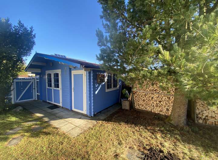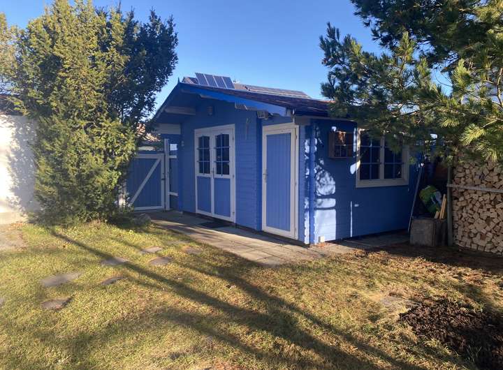 Das Gartenhaus hat einen Hauptraum mit einer Dachbox- Aufhänge- Einrichtung und einen Nebenraum die mit Steckdosen und Beleuchtungen innen und außen versehen sind. Der gesamte Gartenbereich kann mittels Strahlern am Haus beleuchtet werden und ist mit 2 Wasserversorgungen ausgestattet. Am Haus befindet sich eine Alarmanlagen- Vorbereitung. Die Heiß- Wasserversorgung