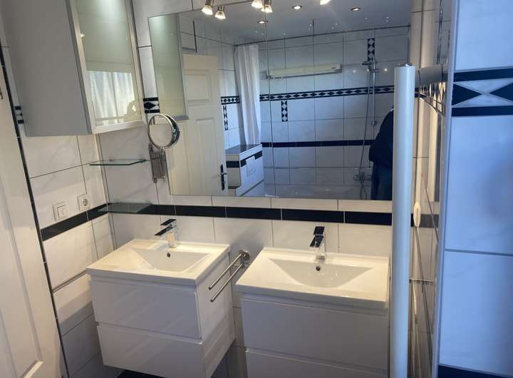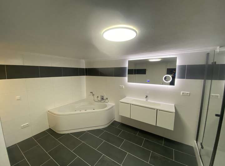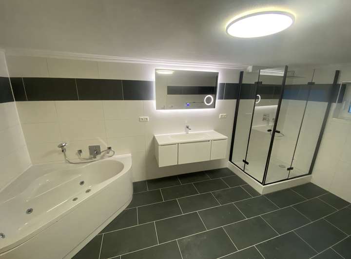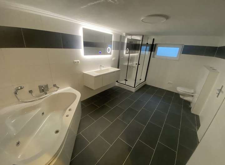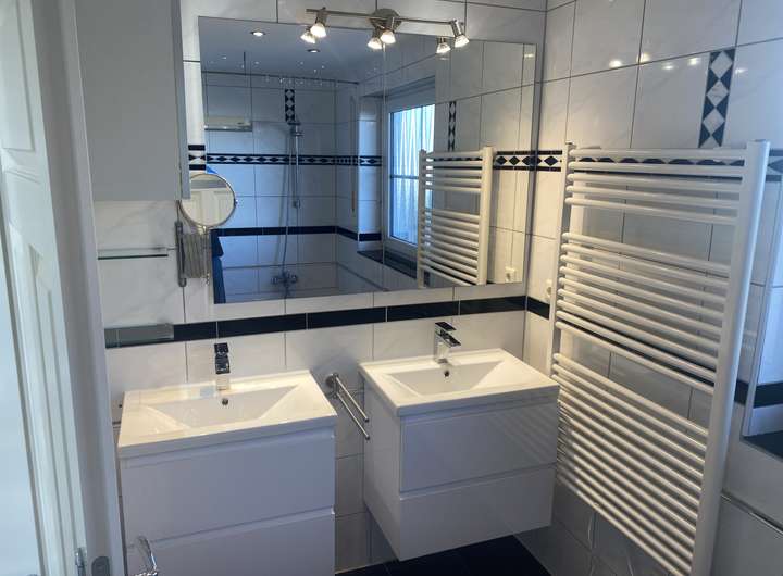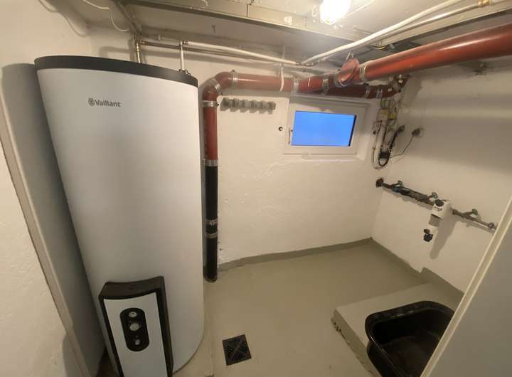in den Bädern wird durch einen neuen hochwertigen Vaillant 300 Liter Boiler (Speicher) im KG sichergestellt.