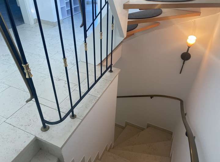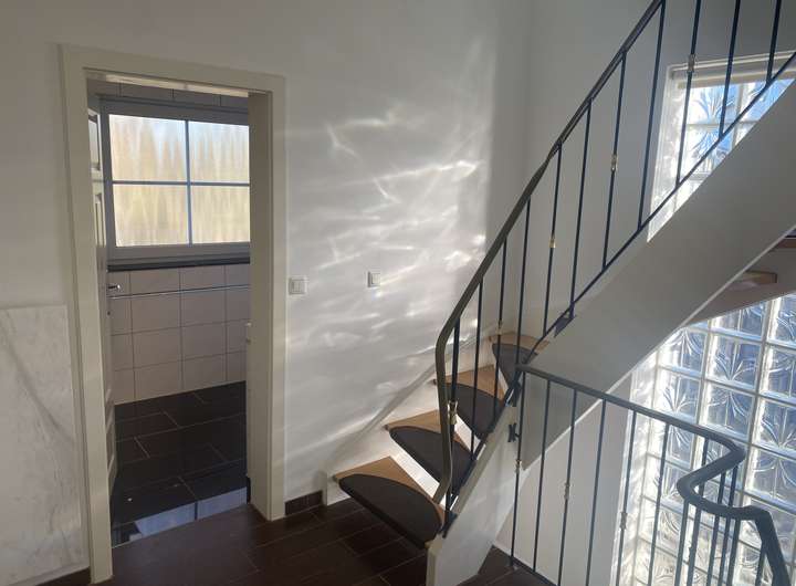 Waschküche, Dachgeschoss- Atelier mit hellen Fliesen in Holzstruktur, zwei abgeschlossene und beleuchtete Speicherabteile, Natursteinböden (Palace- Granit mit elektrischer Fußbodenheizung) im EG, sonst ansprechend in den anderen Etagen hochwertig gefliest in Holzoptik, hochwertige Fußbodenheizung auch überall im Souterrain (KG), Terrasse mit Terracotta- Bodenplatten, ausfahrbare Sonnenmarkise, zweite Terrasse im Garten mit Teakholz- Sitzgarnitur, nicht einsehbarer Gartenbereich mit Hochbeet, überdachten Holzlegen und abgeschlossener Fahrrad- Einstellbereich, Außenbeleuchtung, Alarmanlagen- Vorbereitung, Einzelgarage beleuchtet mit ferngesteuerten Garagentor usw. Eine hochwertige PV- Anlage befindet sich auf der Westseite des Daches zur Stromeinspeisung.