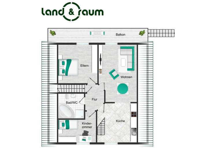 - großer Balkon mit direktem Zugang zum Garten
