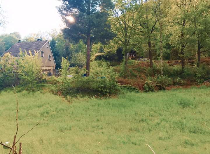 Im hinteren Grundstücksteil beginnt zum Nachbarn hinauf eine leichte Hanglage. Diese können Sie nutzen, um eine schöne und dann sehr ruhig gelegene Gartenterrasse anzulegen. Auf der gegenüberlienden Seite der Straße ist keine Bebauung vorhanden. Sie haben freien Blick in den Wald.
