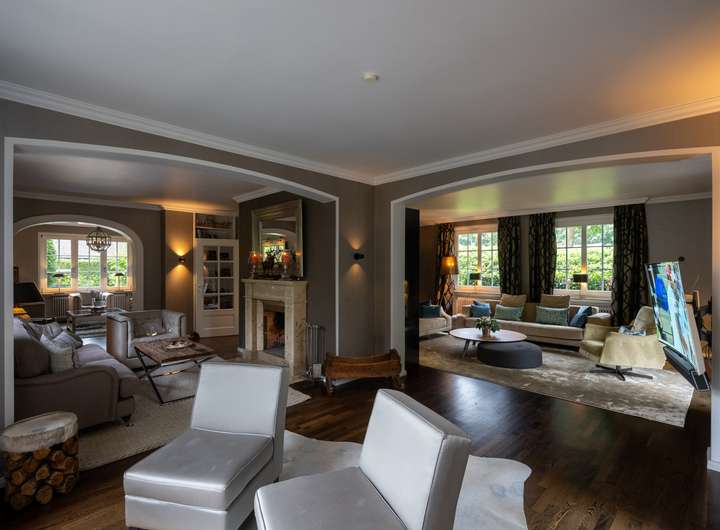 - Großzügiger Wohn- und Essbereich und Kaminzimmer mit schönem, hellen Marmorkamin und hochwertigen Tischlereinbauten