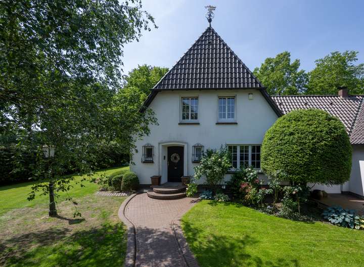 In einer ruhigen Seitenstraße von Wiefelstede, umgeben von weitläufigen Wiesen und Feldern, erwartet Sie diese außergewöhnliche Landhausvilla - ein stilvoller Rückzugsort mit urbaner Nähe zur Stadt Oldenburg.
