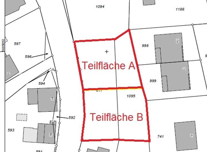 - Unbebautes Grundstück, noch zu vermessene Teilfläche A oder B