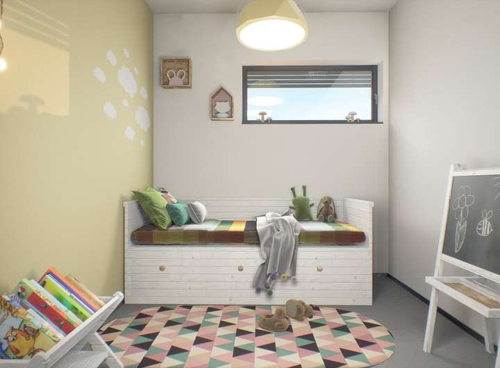 Im oberen Bereich genießen die Eltern im modernen Schlafbereich mit abgetrennter Ankleide freie Aussicht und direkten Zugang auf den Balkon. Kinder-, Arbeits- oder Gästezimmer: auch hierfür ist Platz im Bauhaus.