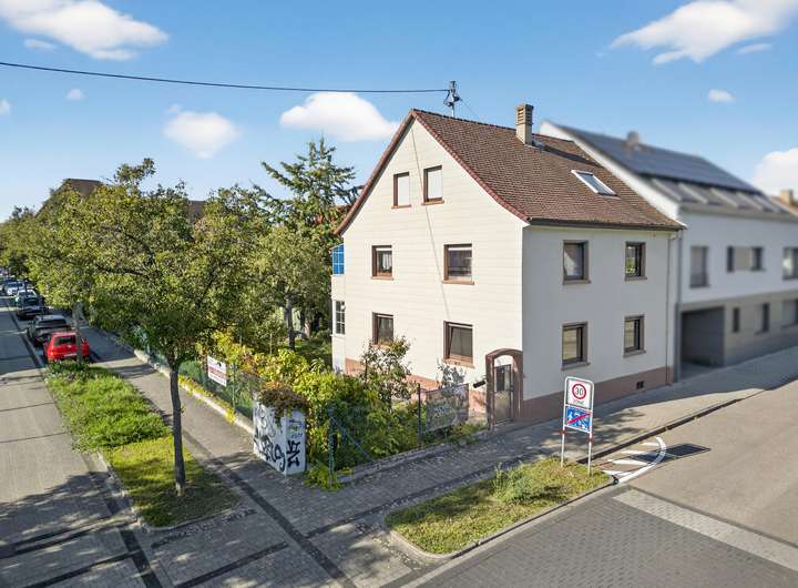 Filetgrundstück in bester Lage in Neureut - gegenüber Parkanlage, 2 Parteien-Haus mit großem angelegten Garten mit weiteren Optionen z.B. großzügige Eckbebauung, Grundstück auch teilbar mit Bauplatz - die Baugenehmigung für die Erweiterung des Bestandsgebäudes bzw. Errichtung eines 2. Gebäudes auf dem Grundstück liegt vor!
