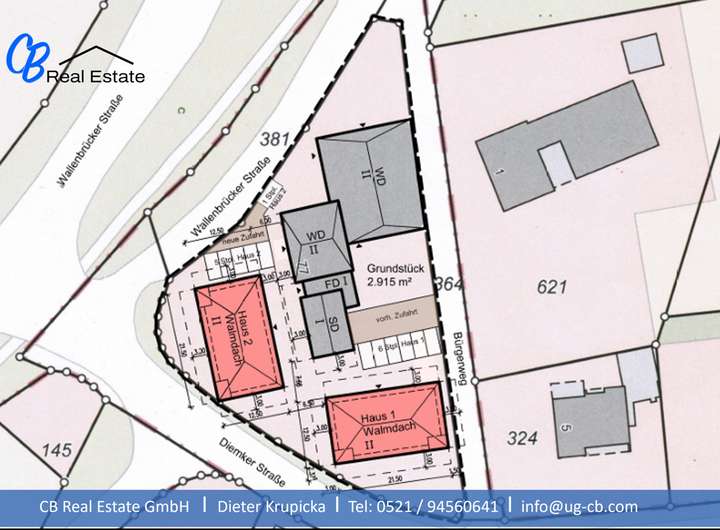 Für das Grundstück, welches noch geteilt und vermessen werden muss, liegt eine positiv beschiedene Bauvoranfrage mit einem Mehrfamilienhaus von 6 Wohneinheiten vor. Das Grundstück mit einer Größe von ca. 600 m², kann mit ca. 543 m² Wohnfläche und 6 Außenstellplätze bebaubaut werden.