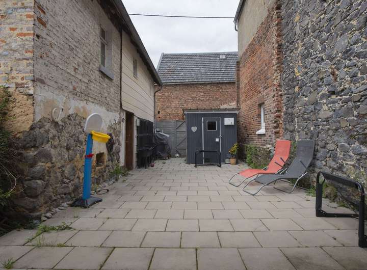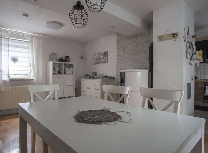Das ca. 600 m² große, ebene Grundstück wurde um 1900 mit einem Wohnhaus und einer Scheune bebaut. Beide Gebäude hängen zusammen, so dass eine Erweiterung der Wohnfläche nicht nur im Dachgeschoss des Fachwerkhauses, sondern auch im Bereich der Scheune möglich wäre.
