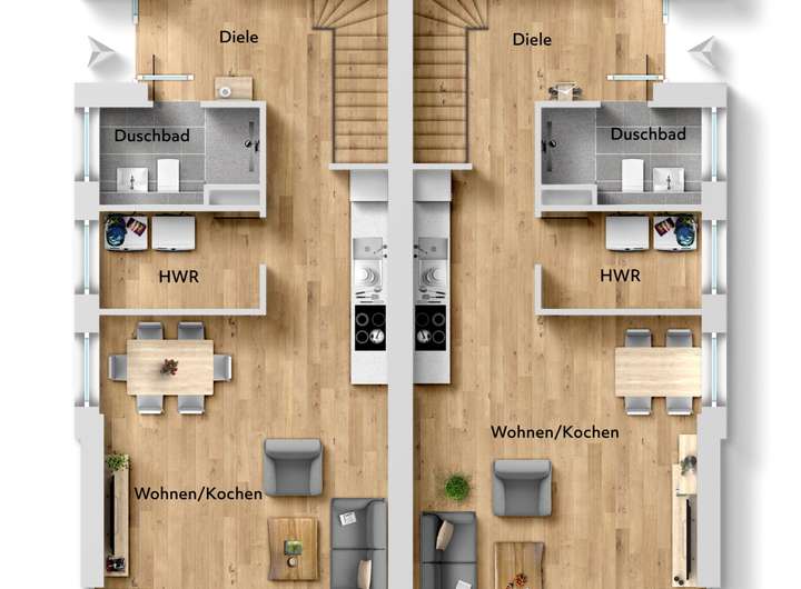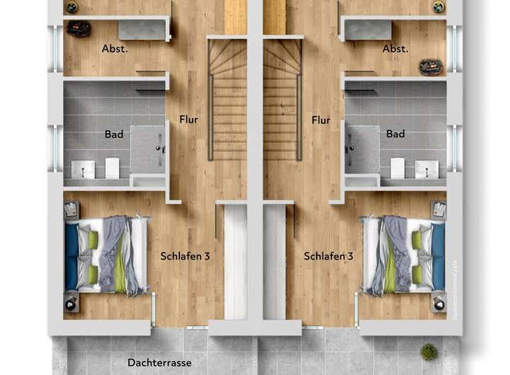 Die Häuser bieten zeitgemäßes Wohnen auf zwei Etagen mit durchdachter Raumaufteilung, moderner Ausstattung und einer großzügigen Dachterrasse.