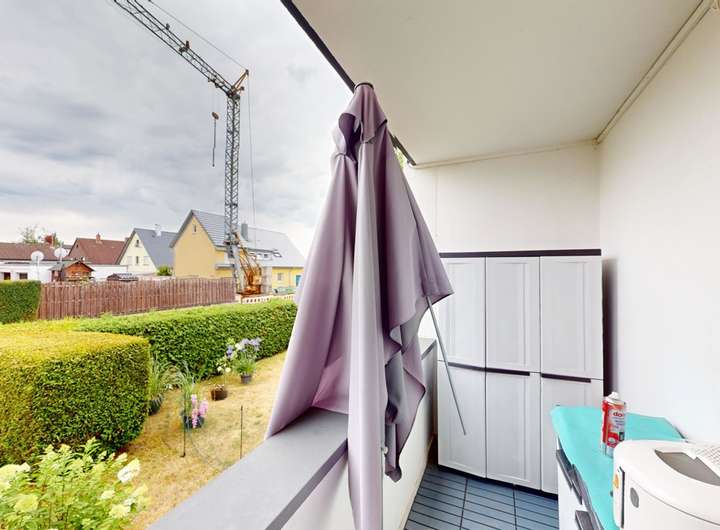 - Balkon im Erdgeschoss, Loggia im Obergeschoss
