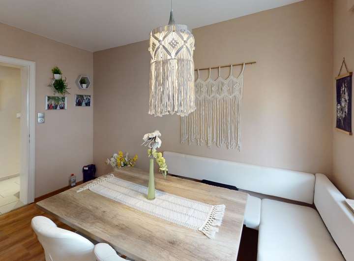 Die Gesamtwohnfläche von ca. 181 m² verteilt sich auf insgesamt acht Zimmer, darunter fünf Schlafzimmer und drei Badezimmer. Jede Wohnung bietet viel Privatsphäre und Komfort. Die Erdgeschosswohnung besticht durch drei Zimmer, eine moderne Einbauküche, ein stilvoll renoviertes Badezimmer sowie einen gemütlichen Balkon. Besonderes Highlight ist die von den Eigentümern selbst bewohnte Wohnung, die nach Absprache zeitnah bezugsfrei werden kann.