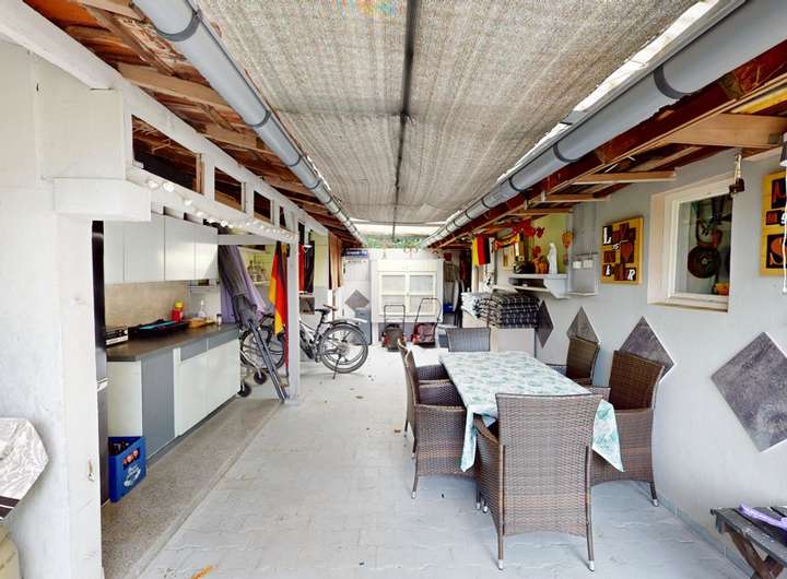 - Terrasse und teilweise überdachter Außenbereich