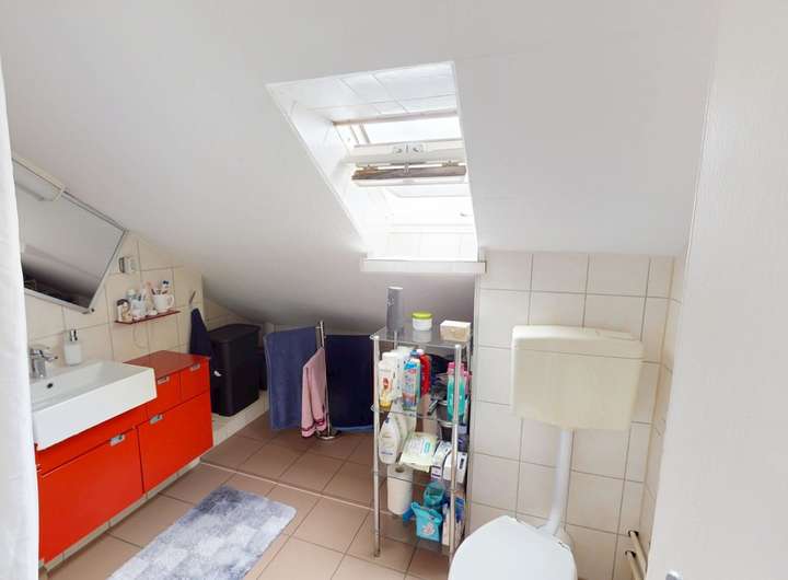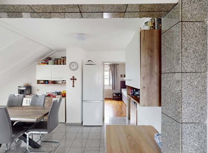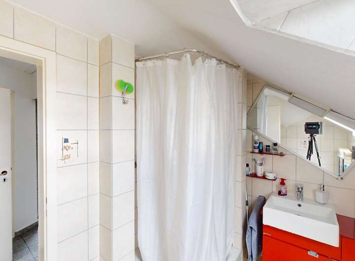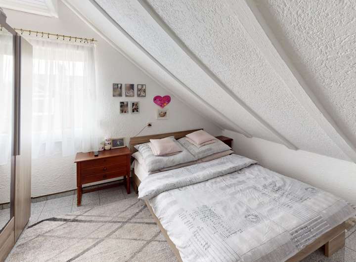 Die Obergeschosswohnung spiegelt den Charme des Erdgeschosses wider, jedoch mit einer einladenden Loggia anstelle des Balkons. Sowohl die Ober- als auch die Dachgeschosswohnung sind aktuell vermietet und generieren zusammen jährliche Kaltmieteinnahmen von 14.400 €.