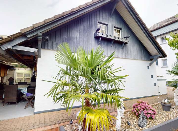 Im Außenbereich erwartet Sie ein großer Garten, der viel Raum für kreative Gestaltungsideen bietet. Zudem lädt eine Terrasse und ein überdachter Bereich zu entspannten Abenden im Freien ein. Zum Anwesen gehören auch eine Garage mit praktischem Rolltor und ein geräumiger Lagerraum.