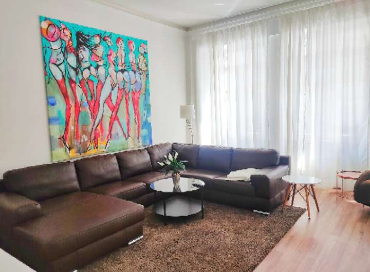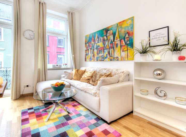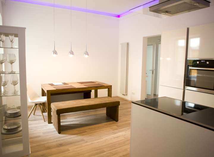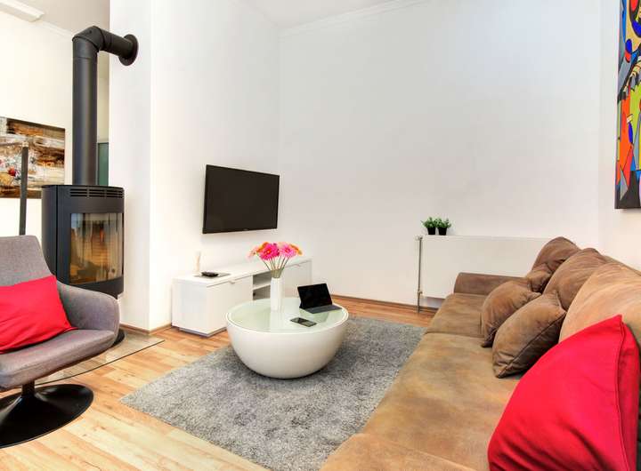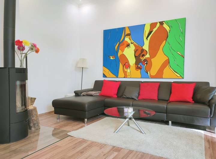 Hochwertige Komplettaustattung inklusive Möbel, Inventar, Handtücher/Bettwäsche, Originalbilder (Kunst), Teilweise Kaminöfen. Einbauküchen, Teilweise Schlafsofas für temporäre Nutzung durch Gäste.