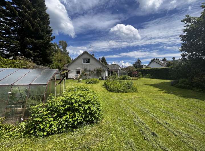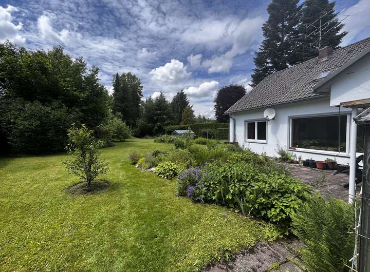 Der nach Südwesten ausgerichtete Garten begeistert mit seinem alten Baumbestand und der liebevoll eingewachsenen Bepflanzung – eine grüne Oase mit viel Charme.