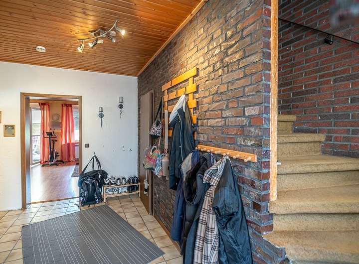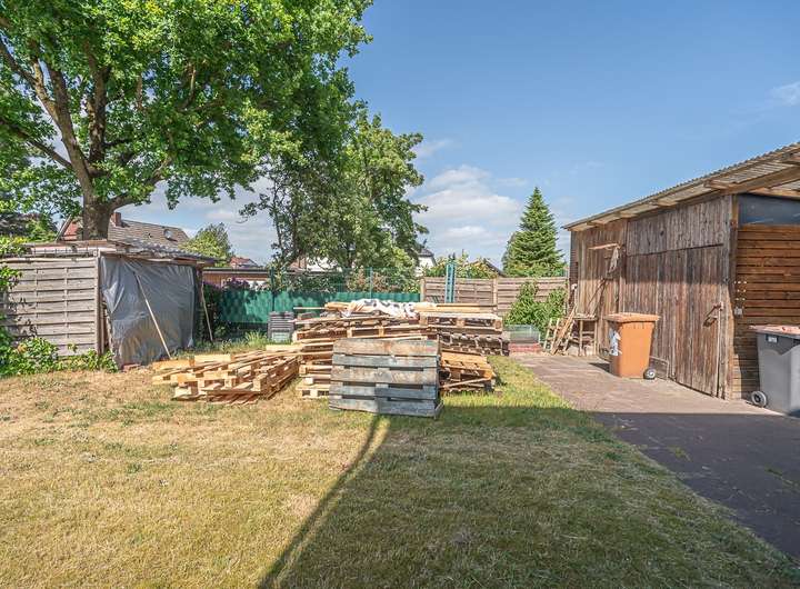 Die linke Haushälfte von den Eingängen aus gesehen ist langfristig vermietet und wird in diesem Zustand verkauft. Die geringe Kaltmiete von 350 € pro Monat muss sicherlich dem Markt angepasst werden, dieses obliegt allerdings dem neuen Eigentümer.