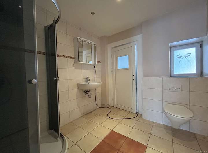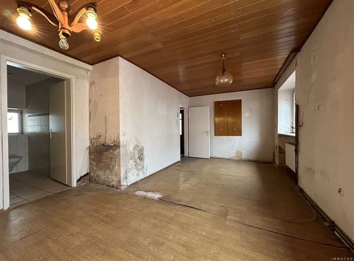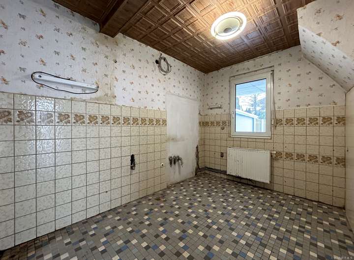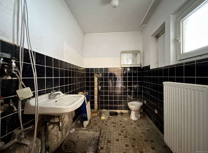 Das Haus ist deutlich renovierungsbedürftig und eignet sich ideal für Käufer, die bereit sind, Zeit und Arbeit in die Sanierung zu investieren. Die Grundausstattung umfasst eine Gas-Zentralheizung aus dem Jahr 2008 sowie zweifach verglaste Kunststofffenster. Im Erdgeschoss befindet sich ein Tageslichtbad mit Dusche, während das Badezimmer im Obergeschoss bereits entkernt wurde und auf den Ausbau wartet. Die Bodenbeläge bestehen überwiegend aus PVC und Fliesen.