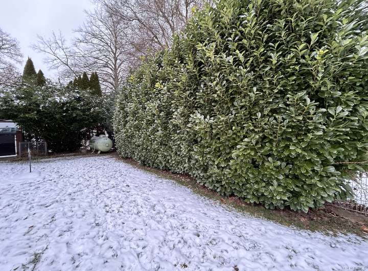 Ein Garten gehört ebenfalls zum Grundstück und bietet Platz für Erholung oder kreative Gestaltungsideen.