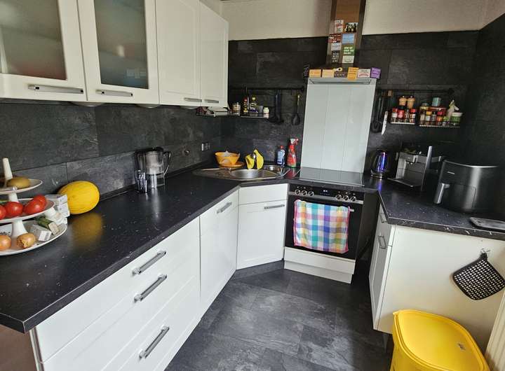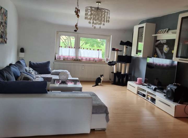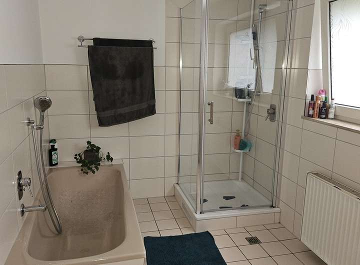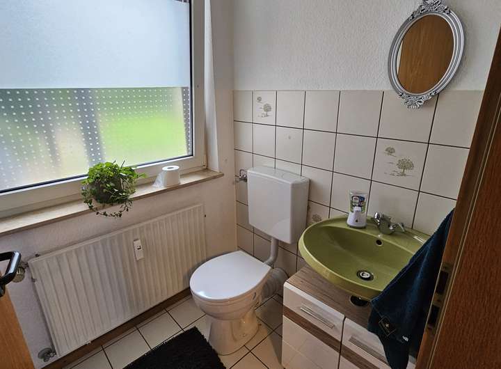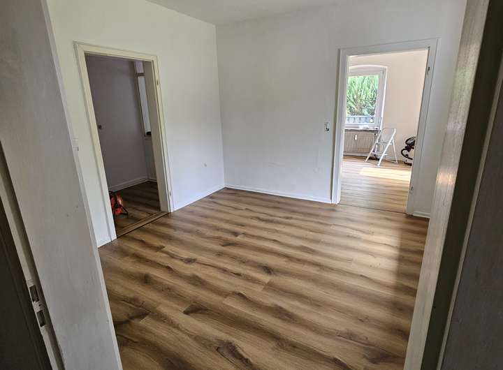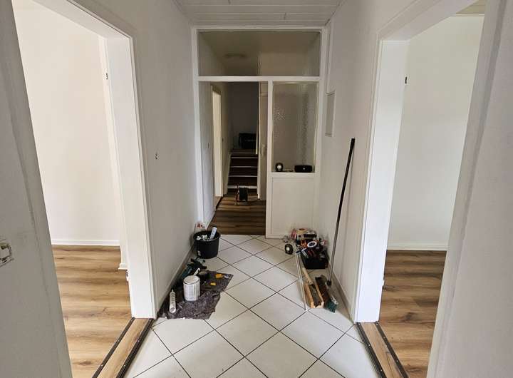 Die erste Wohnung verfügt über 2,5 Zimmer und um die 70 m². Diese Wohnung wurde 2025 komplett renoviert und verfügt über ein neues Badezimmer, sowie neue Fußböden. Mieteinnahmen sind hier 480€ kalt pro Monat.