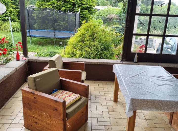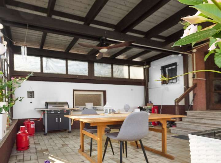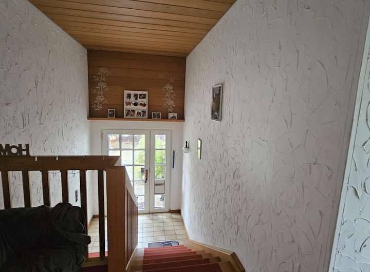 Die dritte Wohnung verfügt über 6 Zimmer und ca. 160 ². Dies verläuft sich ebenfalls über 2 Etagen. Im Erdgeschoss befindet sich eine kleine Küche, 2 Kinderzimmer, ein Gäste WC, sowie eine bedachte Terasse. Ebenfalls im Erdgeschoss befindet sich der Kellerzugang, in welchem sich der Heizungskeller befindet.
