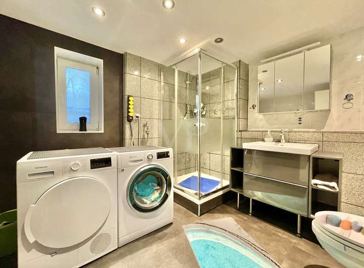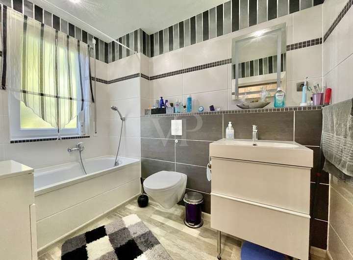 Im Obergeschoss erwartet Sie seit 2024 eine moderne, offen gestaltete Küche. Insgesamt bietet das Haus drei geschmackvoll gestaltete Bäder. Besonders erwähnenswert: das im Jahr 2021 vollständig sanierte Badezimmer im Erdgeschoss, das mit moderner Ausstattung überzeugt.