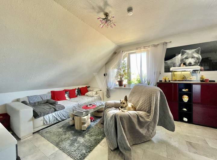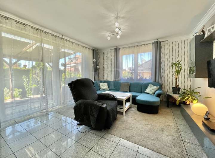 Bereits der erste Blick verrät: Dieses Haus wurde mit Herz und Verstand gestaltet. Beim Betreten des Hauses empfängt Sie das 2022 modernisierte Wohnzimmer – ein lichtdurchfluteter Raum, dessen hochwertiger Stuck dem Interieur eine elegante Note verleiht. Eine angrenzende offen gestaltete Küche bildet den Mittelpunkt des Familienlebens, wo Kochen, Genießen und Zusammensein auf stilvolle Weise verschmelzen.