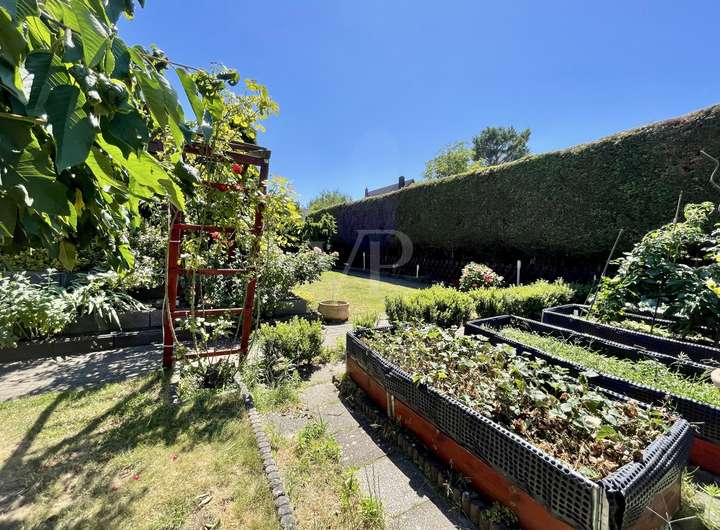Der Garten – ein echtes Paradies für Naturfreunde – ist nicht nur mit liebevoll angelegten Hochbeeten ausgestattet, sondern verfügt auch über eine Zisterne zur umweltschonenden Bewässerung. An warmen Tagen lädt der eigene Pool zur Erfrischung ein und macht den Sommer im eigenen Zuhause perfekt.