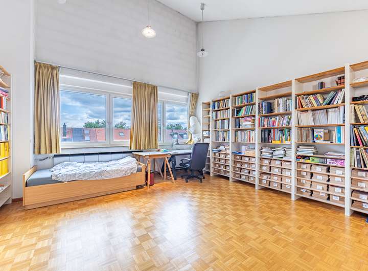 Schlaf- und die beiden Kinderzimmer sind auf separaten Ebenen untergebracht und sorgen für viel Privatsphäre. Ein ganz besonderes Highlight erwartet Sie im Dachgeschoss: ein großzügiger, offener Raum mit beeindruckender Deckenhöhe von bis zu ca. 6 Metern. Die Architektur verleiht diesem Bereich den Charakter eines Ateliers – lichtdurchflutet, luftig und voller Möglichkeiten. Ob als Rückzugsort, Arbeits- oder Kreativbereich, Schlafzimmer oder Wohnlounge – hier findet individuelles Wohnen seinen Ausdruck. Ein Raum, der inspiriert und begeistert.