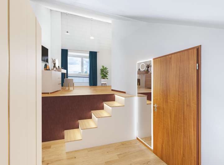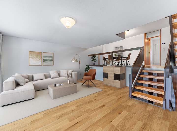 Die intelligente Raumaufteilung bietet zahlreiche Nutzungsmöglichkeiten – ideal für Familien mit Kindern oder auch für ein Mehrgenerationenwohnen. Die versetzten Ebenen schaffen private Rückzugsorte sowie offene Kommunikationsflächen – ein modernes Wohnkonzept, das sowohl Individualität als auch Gemeinschaft fördert.