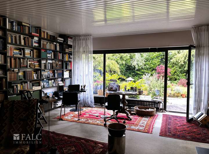 Beim Betreten dieses charmanten Hauses aus dem Jahr 1974, das eine großzügige Wohnfläche von 149m² bietet, werden Sie von einem einladenden Eingangsbereich empfangen. Von hier aus führt der Weg in das geräumige Wohnzimmer, das durch große Fensterfronten viel Tageslicht erhält und direkten Zugang zur Terrasse und zum Garten bietet.