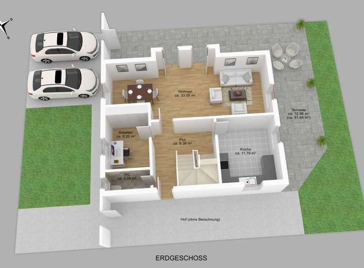 Im Erdgeschoss (ca. 64 m²) erwarten Sie: