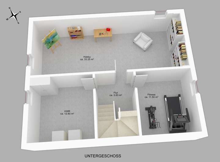 • drei Nutzräume, darunter ein großzügiger Kellerraum mit ca. 33 m².