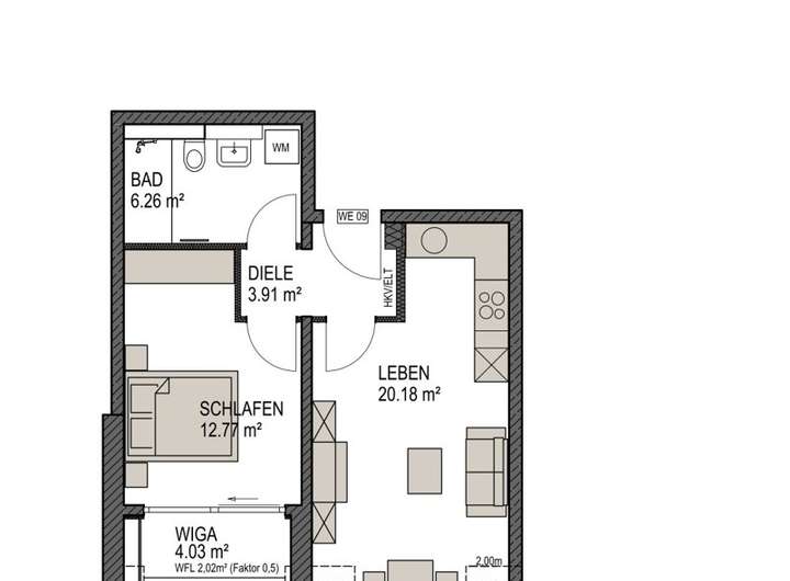 Die Wohnung Nummer 9 bietet modernes offenes Wohnen, mit Kochnische, großen Fensterelementen und einem schönem, durch eine Schiebetür zu öffnendem, Wintergarten, welcher den Wohnraum verlängert und ganzjährig nutzbar ist.