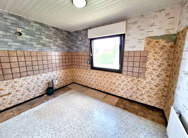 Die Wohnfläche beträgt insgesamt ca. 75 m². Das freundliche Einfamilienhaus ist zwar in die Jahre gekommen, lässt sich aber mit einigen Renovierungsarbeiten – wie Wände streichen, teilweise neue Bodenbeläge und eine neue Küche – in eine entspannte, idyllische Wohnoase mit Blick in die Natur verwandeln.