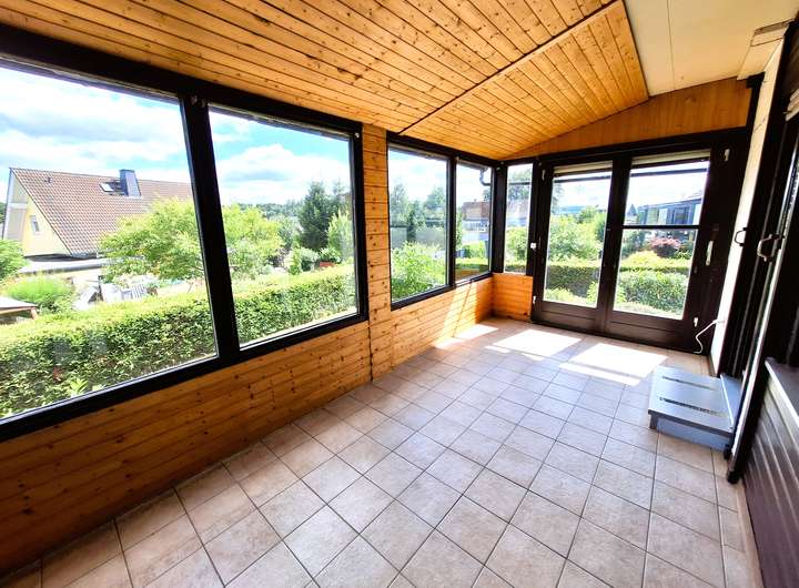 Der Wintergarten ist nicht beheizt, bietet aber durch die großen Fenster die Möglichkeit, nahezu das ganze Jahr über die Natur und das Grün zu genießen. Im Wohnzimmer sorgt ein neuer Kaminofen, der erst im Januar 2025 eingebaut wurde, für kuschelige Wärme. Hier können Sie sich entspannen und die ruhige Atmosphäre sowie den freien Blick ins Grüne genießen.