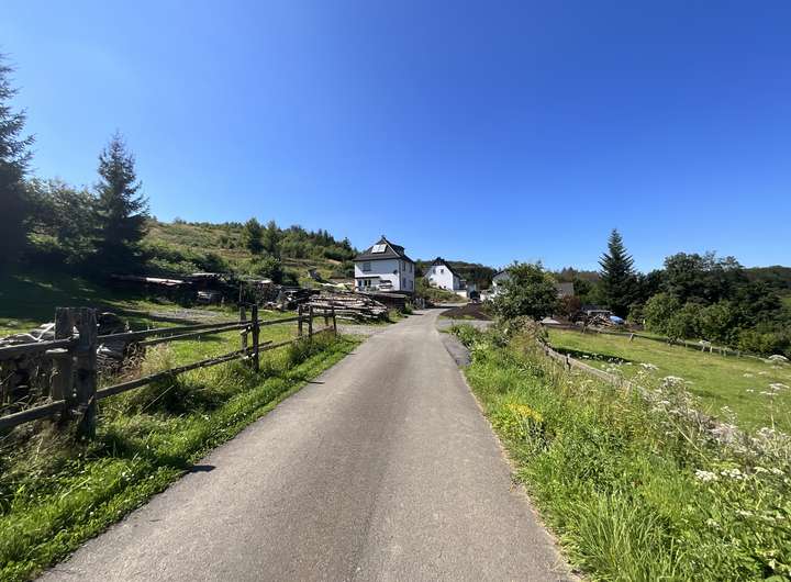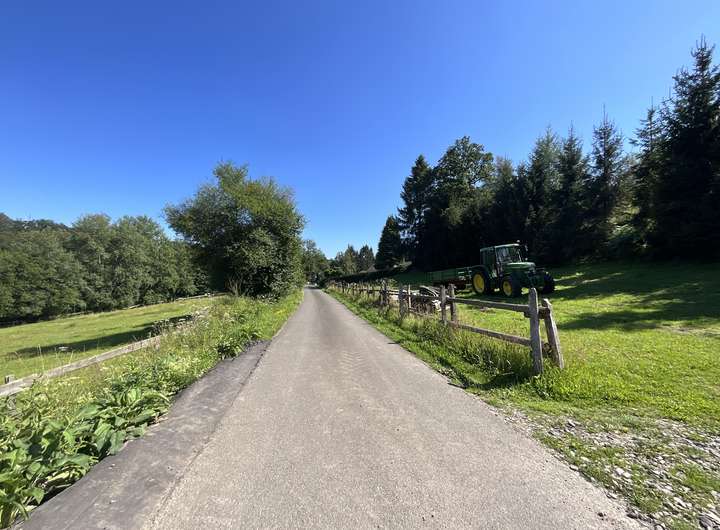 mit vielen Grün- und Waldflächen. Dazwischen befinden sich nur 2 Wohnhäuser. Perfekt zum spazieren gehen und für Naturliebhaber. Ihre Kinder können hier problemlos auf der Straße spielen.