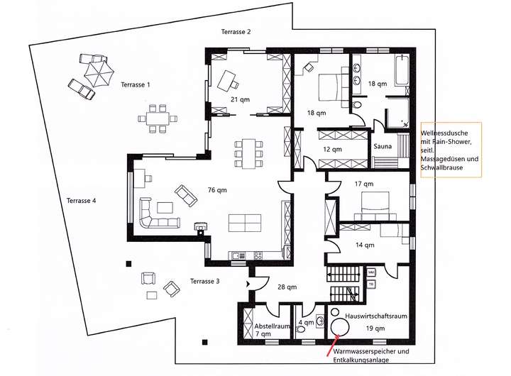 Mit ca. 364 m² Wohnfläche erstreckt sich dieses Objekt der Spitzenklasse über zwei Etagen mit einer Raumhöhe von 2,75 m.