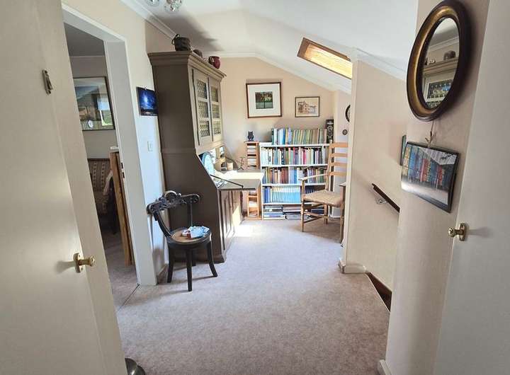 Das Dachgeschoss bietet als weiteres Highlight ein vielfältig nutzbares Studio. Durch ein großes Dachflächenfenster und ein weiteres Fenster gelangt viel Licht in diesen sehr charmanten Raum. Zum Wohlfühlen in jeder Jahreszeit sorgt auch hier ein Klima-Splitgerät. Ebenfalls sehr gemütlich, aber aktuell nur Nutzfläche (keine Stehhöhe für Erwachsene) ist ein weiterer Raum mit ca. 25 m² Fußbodenfläche. Auch hier sorgt ein Klima-Splitgerät bei Bedarf für angenehme Temperaturen. Dieser Raum bietet durchaus Potential für den Ausbau zu weiterem Wohnraum (ggfs. Genehmigungen erforderlich). Beim Nachbarhaus wurde dies bereits durchgeführt.