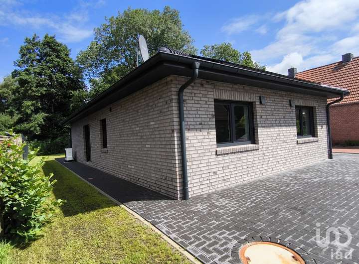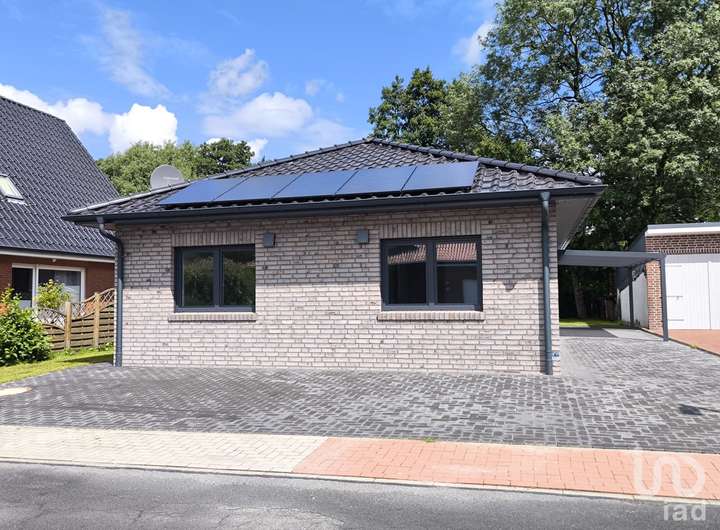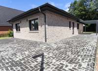 Dieser hochwertige Neubau-Bungalow befindet sich in ruhiger Lage von Ihrhove, einem Ortsteil von Westoverledingen. Das Grundstück umfasst ca. 465 m², die Wohnfläche beträgt ca. 98 m².