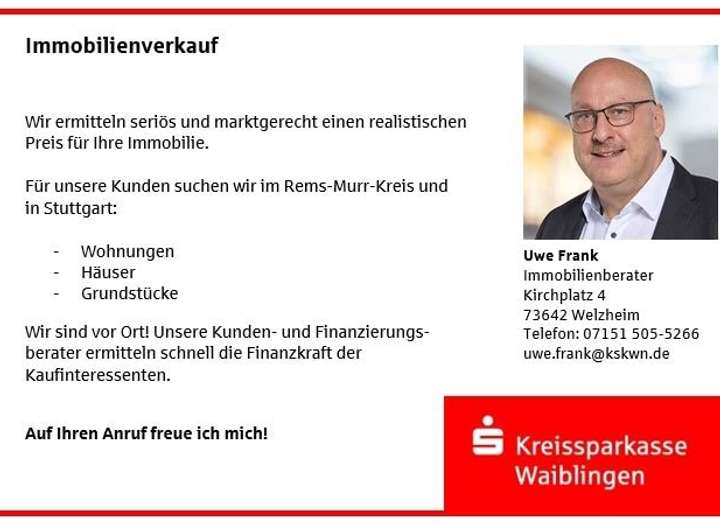 Die Stadt Welzheim ist mit ihren ca. 11.300 Einwohnern Unterzentrum und Mittelpunkt des Schwäbischen Waldes, attraktive Familienstadt mit breitem Bildungs- und Betreuungsangebot, dynamischer Wirtschaftsstandort und als Luftkurort beliebtes Ziel am Limes im Naturpark. Welzheim liegt ca. 15 km nördlich von Schorndorf (S-Bahn, B29 Richtung Stuttgart).