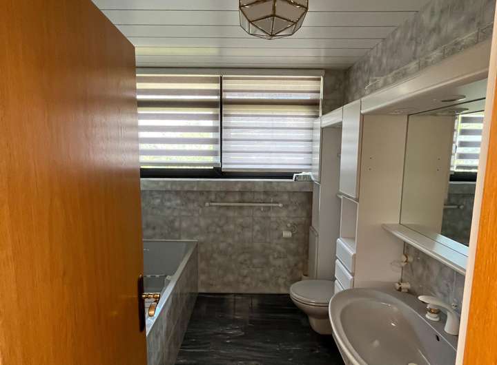 Zur Vermietung steht ein gepflegtes Einfamilienhaus mit durchdachter Raumaufteilung und guter Ausstattung. Das Haus verfügt über eine großzügige Terrasse mit direktem Zugang zum Garten, eine Garage sowie ein zusätzliches Carport. Eine integrierte Sauna im Untergeschoss bietet zusätzlichen Komfort. Auch die eingebaute Bar im Keller des Hauses lädt zu gemütlichen Abenden ein. Im Erdgeschoss des Hauses wurde grauer Marmorboden verlegt, was dem Objekt eine hochwertige Anmutung verleiht. Außerdem ist es mit einer schönen Einbauküche ausgestattet. Das Haus eignet sich ideal für Mieter, die Wert auf Ruhe, Platz und eine solide Wohnqualität legen.